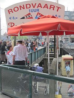 De opstapplaatsen van rondvaartboten van rederij Lovers en Holland International zijn tegenover het centraal station.