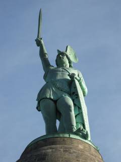Het Hermannsdenkmal is een reusachtig monument uit de negentiende eeuw voor de Germaanse legeraanvoerder Hermann. Hermann versloeg de Romeinen in de Slag bij het Teutoburger Woud.
