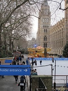 Zo is er in december een ijsbaan in Hyde Park, voor de Tower of London en bij het Museum For Natural History. Ook in de twee grote winkelcentra van Westfield in Londen is dan een ijsbaan.