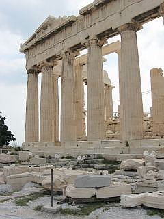 Het Parthenon was de belangrijkste tempel voor de godin Athena in Griekenland. Het Parthenon heeft zuilenrijen waarvan de zuilen bewust niet recht staan en ongelijk zijn.