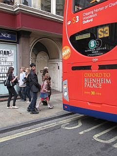 Vanuit Victoria Station in Londen vertrekken veel bussen naar Oxford. Er zijn een aantal busmaatschappijen die de lijn exploiteren: Oxford Tube, Oxford Express en de goedkope Megabus.