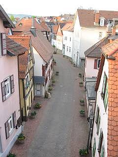 De weg Schulberg ligt iets hoger dan de Altstadt dus u heeft hier een mooi uitzicht over de daken van de vele vakwerkhuizen en de vele smalle straatjes. De Altstadt van Bad Homburg is bijna volledig voetgangerszone.