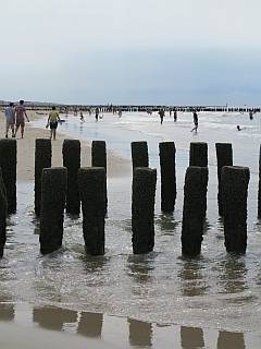 Op het strand van Domburg kunt u bij de houten palen die hier op veel plaatsen de zee in lopen witte zeeboontjes vinden. Deze zee-egels lijken kleine witte stenen balletjes en hebben natuurlijk geen stekels meer. Soms liggen er veel bij elkaar. Meestal zijn het geen fossielen maar het is wel leuk om ze te vinden.